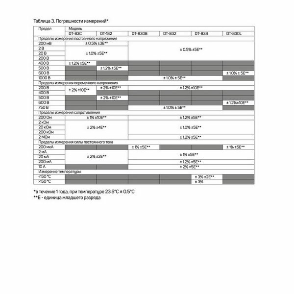 | Измерение постоянного напряжения | есть |