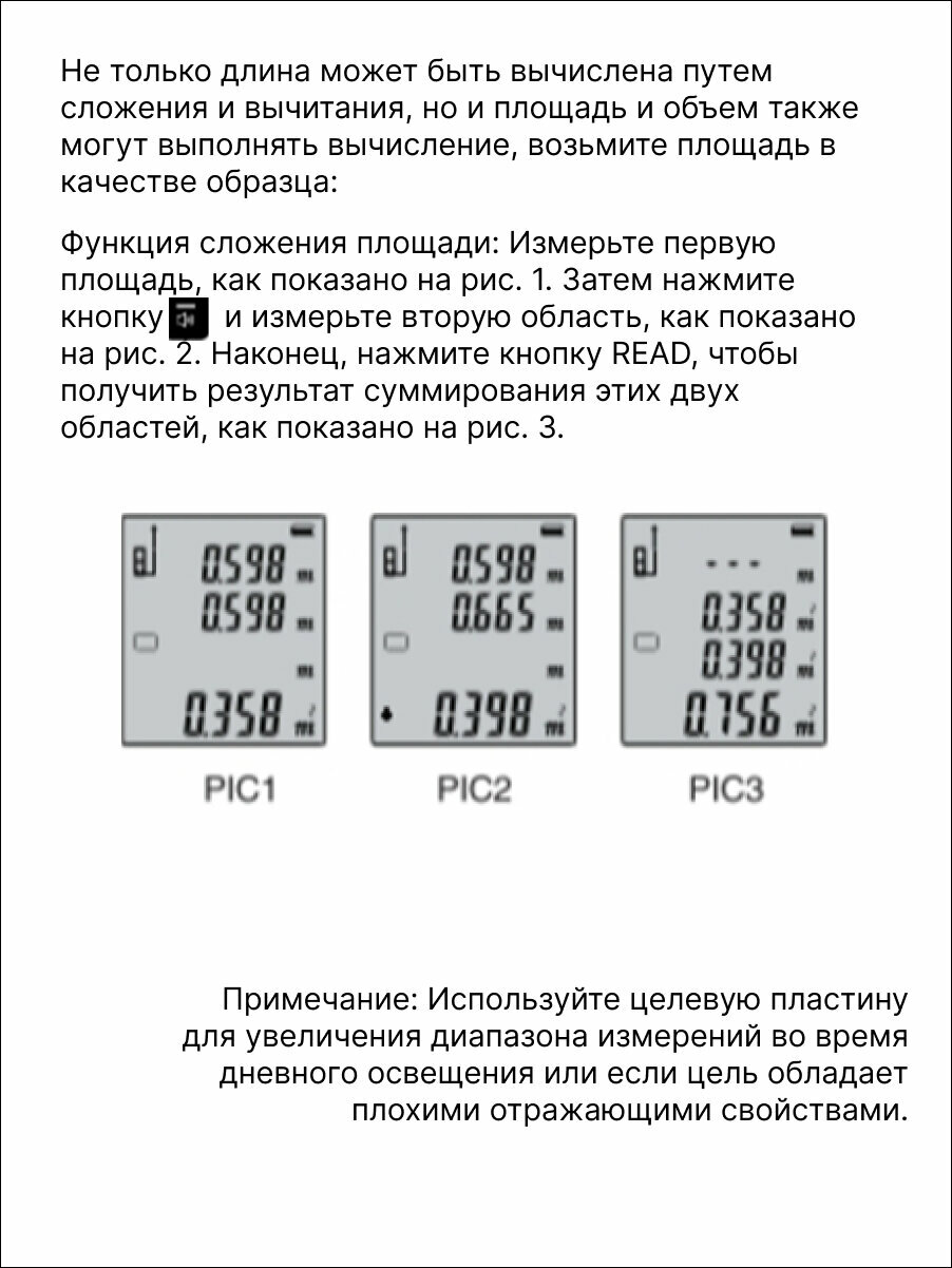 | Отзыв: | В доме перемерил всё что нужно и не нужно. Удобно складывать и отнимать. Очень актуален при расчёте длин кабеля или трубы. Инструкция на русском и понятно написана. |