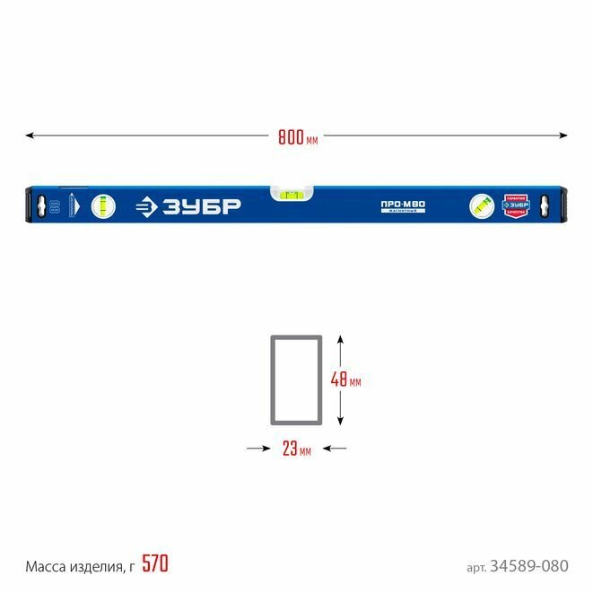 ЗУБР 800 мм, Усиленный магнитный уровень, Профессионал-М (34589-080)