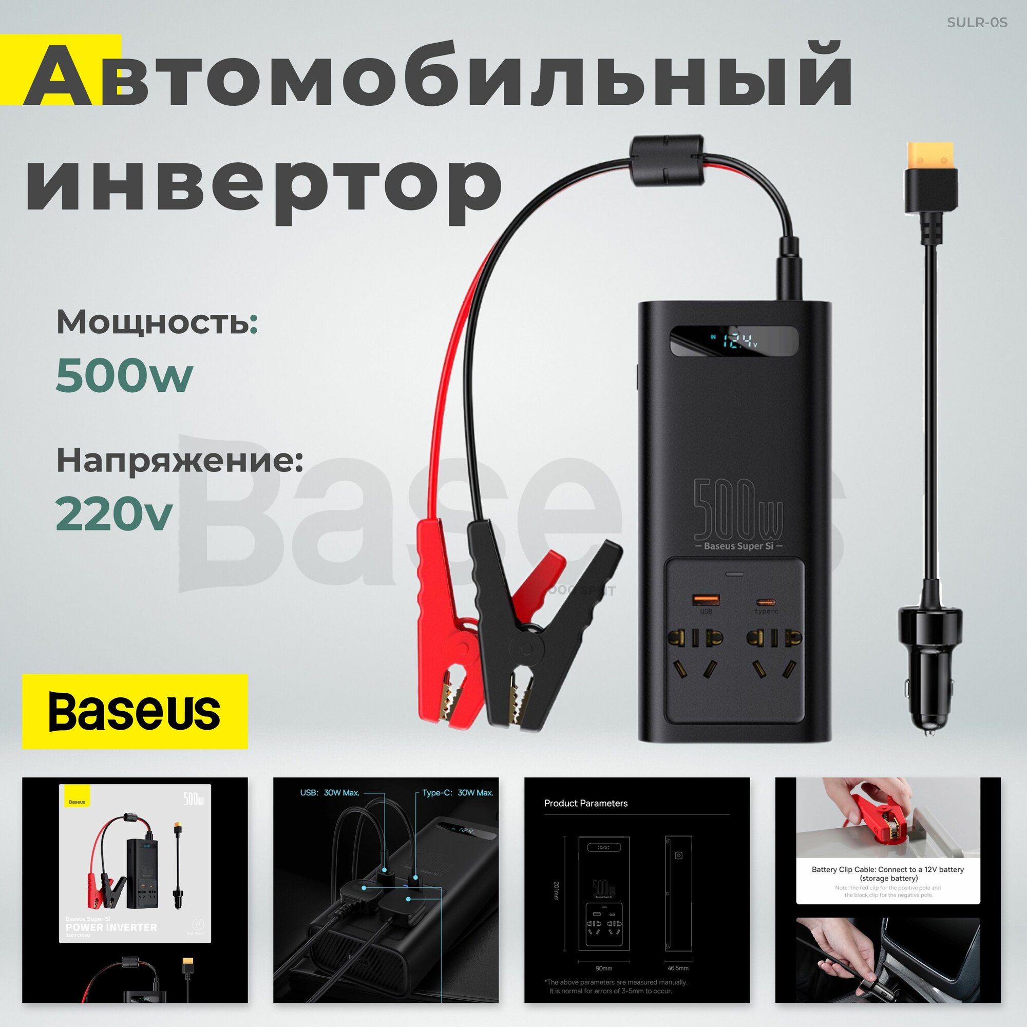 Автомобильный инвертор Baseus Super Si Power Inverter 500W интересное: