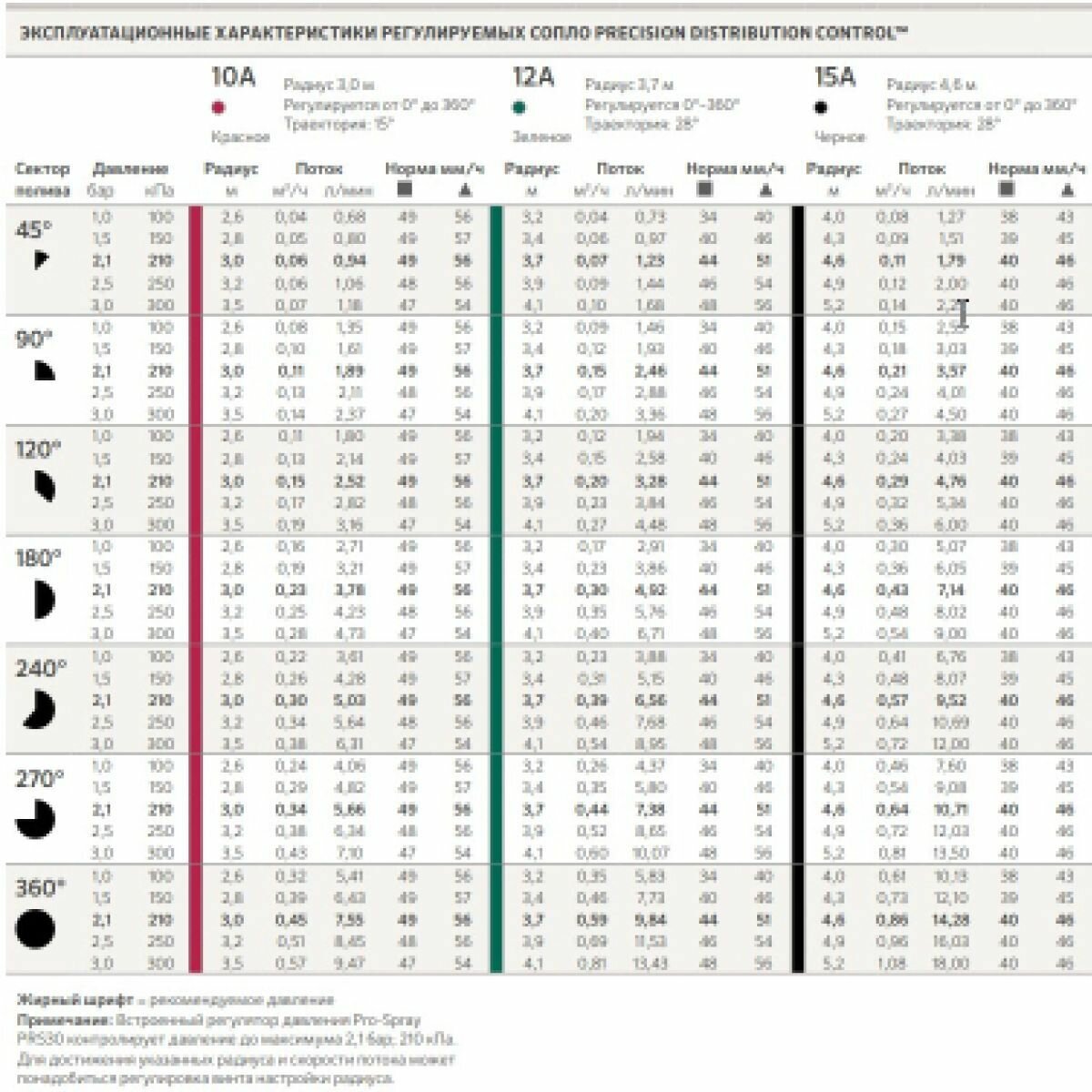 | Дополнительная информация | траектория 0°; регулируется сектор полива от 0° до 360°; радиус полива от 0.9 м до 1.4 м; расход воды от 0.31 до 3.63 л/мин; рекомендуемое давление 2.1 бар с радиусом полива 1.2 м |