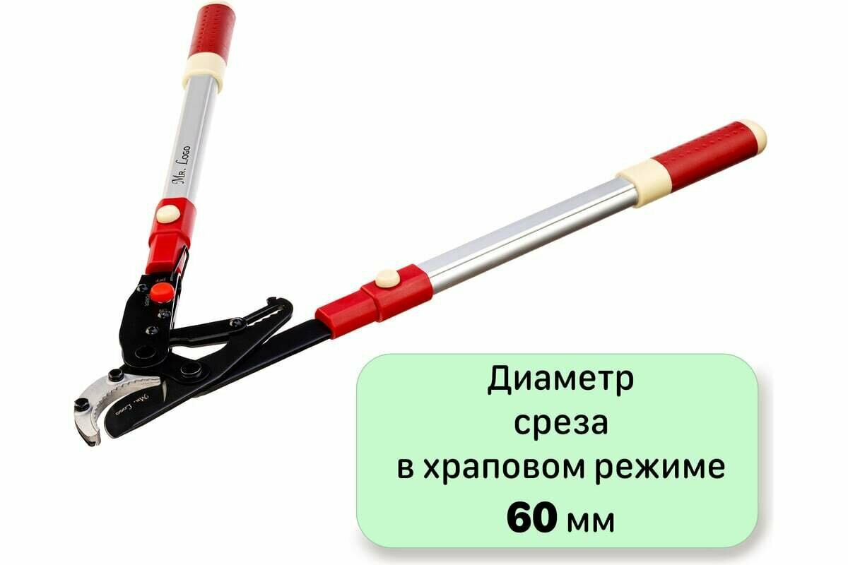 Сучкорез садовый двойного действия с храповым и классическим механизмом с телескопическими ручками Mr.Logo арт. 4650 для обрезки толстых веток до 60 мм