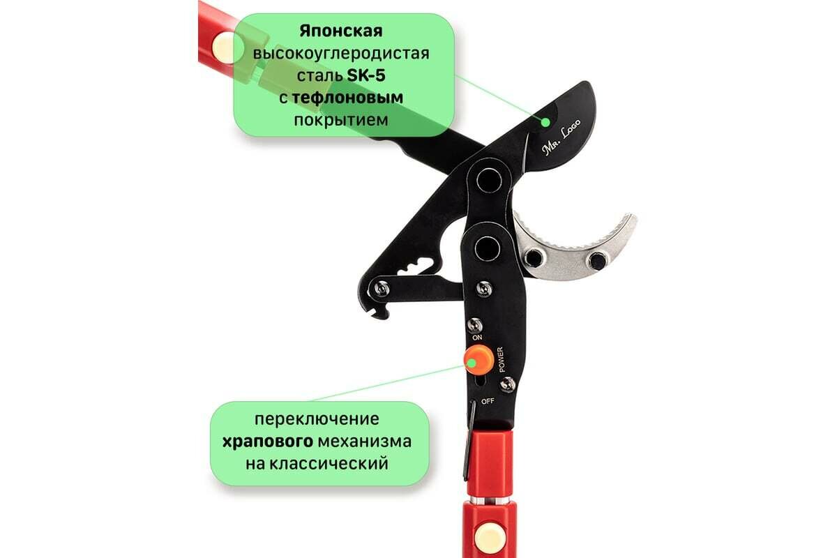 Сучкорез двойного действия с храповым и классическим механизмом с телескопическими ручками Mr.Logo арт. 4650