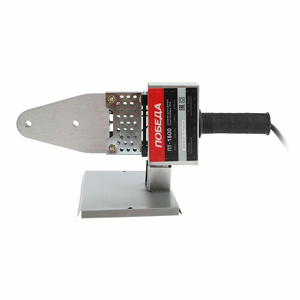 Купить Аппарат для сварки пластиковых труб победа, ПТ-1800, 2000 Вт, 6 насадок, стойка, отвертка, кейс мет