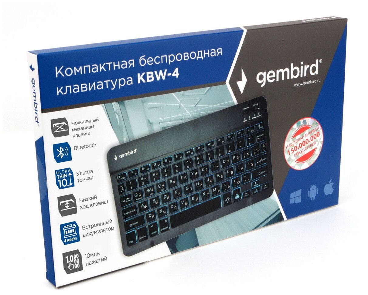 Купить Клавиатура Gembird "KBW-4", беспроводная, ножничный механизм, регулировка подсветки