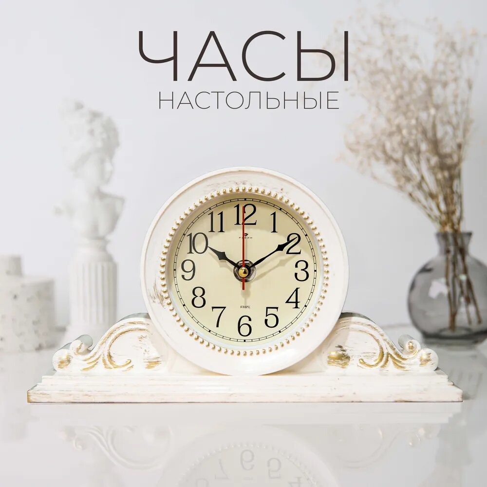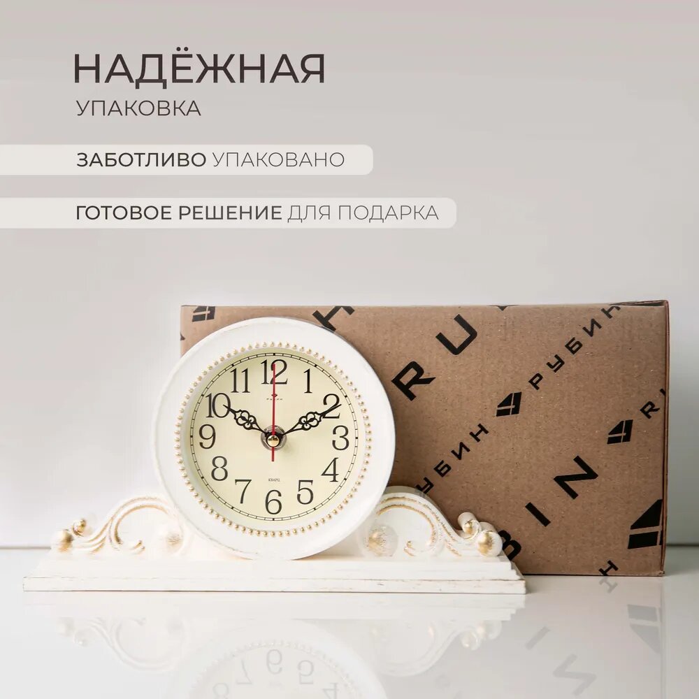Часы настольные классические Рубин бесшумные, 43 х 25 см белые