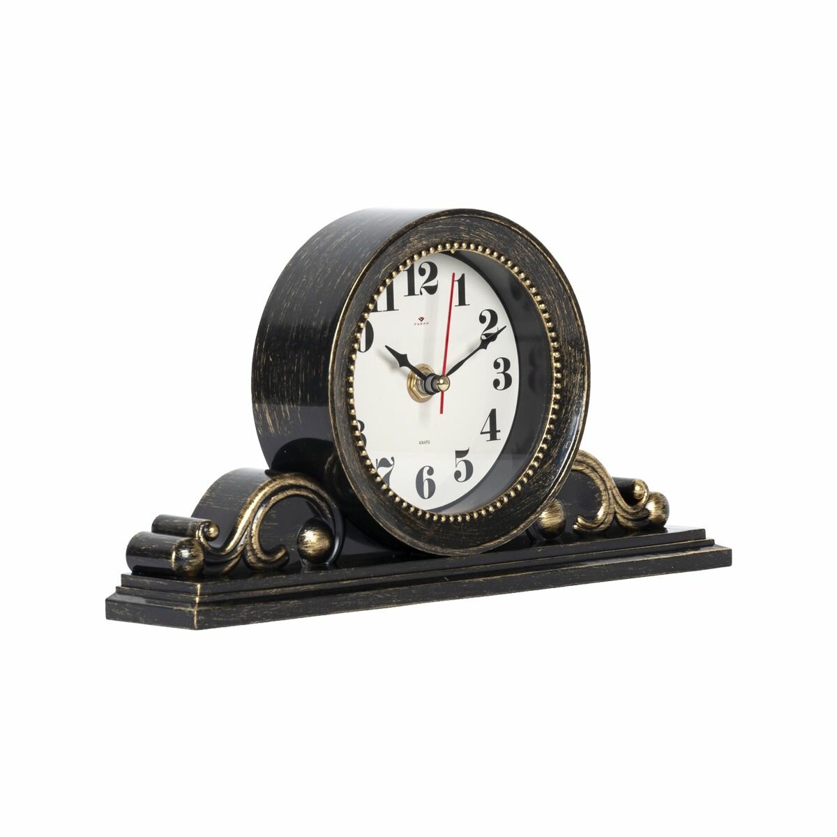 Часы настольные кварцевые необычной формы из пластика черно-медного цвета на батарейках Рубин Классика 4225-002 с арабскими цифрами плавным ходом для дома гостиной дачи или кафе, размер часов 43х25 см