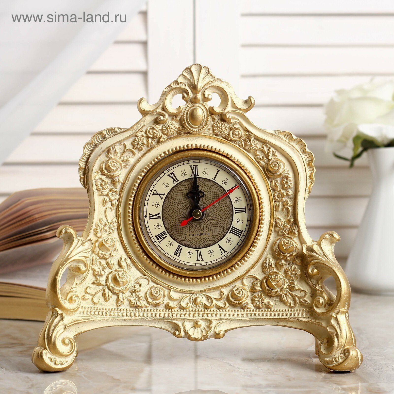 Часы настольные интерьерные каминные, 21 х 19 х 6.5 см, d-7 см, белые с позолотой, 3940737 интересное: