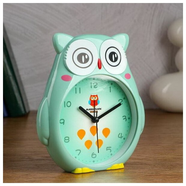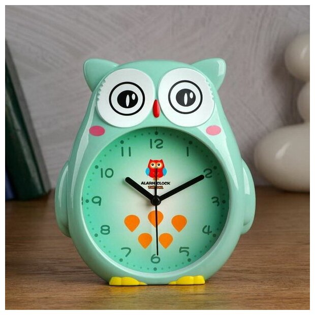 Будильник детский "Совушка" 14.5х4х16 см, дискретный ход, зелёный 5367677