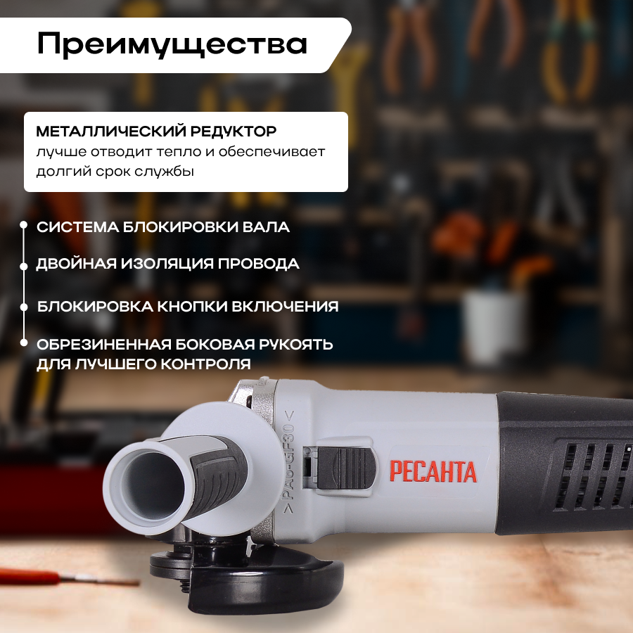 Углошлифовальная машина (болгарка)УШМ-125/1100 Ресанта, 125мм, 1100Вт интересное: