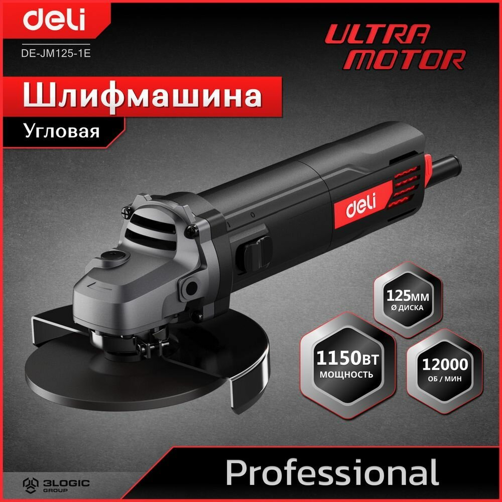 Профессиональная угловая шлифмашина (болгарка) Deli DE-JM125-1E (1150Вт, диск 125мм, 12000 об/мин, Ultra Motor)