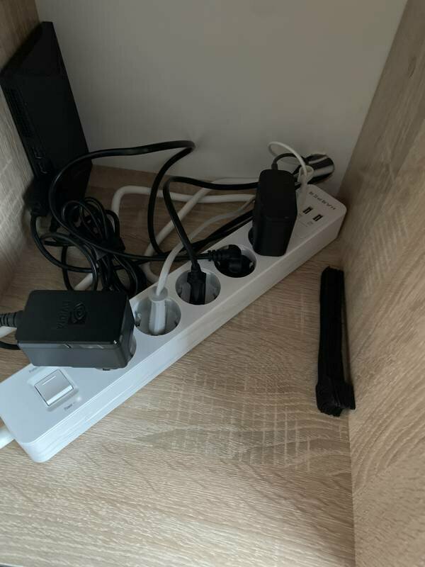 Ранее на кухне был сетевой фильтр, который держит только 2000 Вт и при включении микроволновки, мультиварки и электрочайника часто выбивало. Установил этот фильтр и больше таких проблем на наблюдалось Для компьютера решил этот фильтр прикрепить к нижней части стола - это было сделать не так-то просто (или я просто не в курсе как это делается). В общем, не получится просто так раскрутить его, а потом прикрутить нижнюю часть фильтра к столу и обратно собрать. Всё потому, что фильтр разбирается и собирается снизу ? По итогу, решил проблему следующим образом - прикрутил один саморез сразу к столу и надел цельный фильтр. Потом наживил второй саморез, надел фильтр и плоскогубцами насколько смог прикрутил. Пока что ещё держится. Зарядка через USB тоже вполне хорошая - насколько быстрее заряжается, чем через блочок - не измерял. |