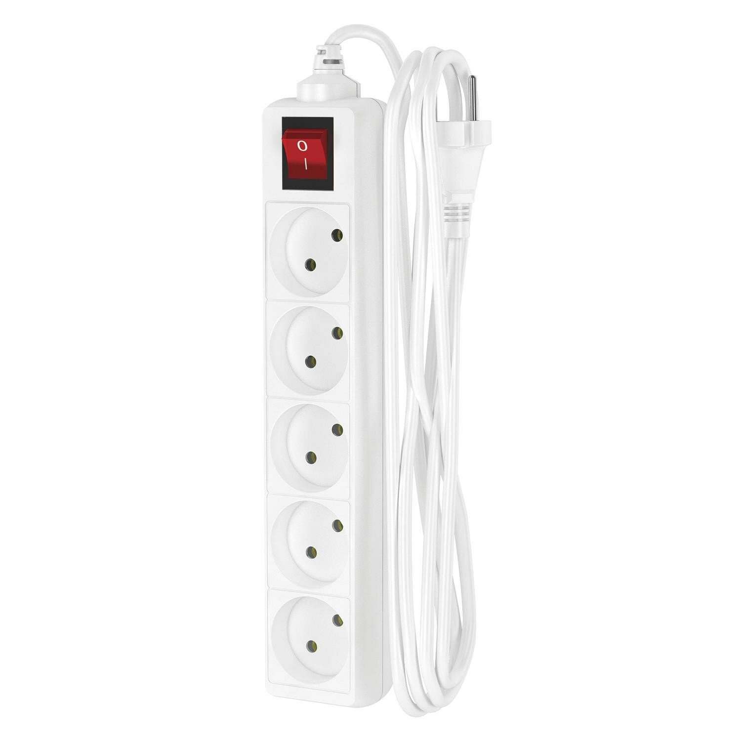 Удлинитель для гирлянды сетевой для розетки фотон 10А 5м 5 розеток с выключателем белый, ГОСТ