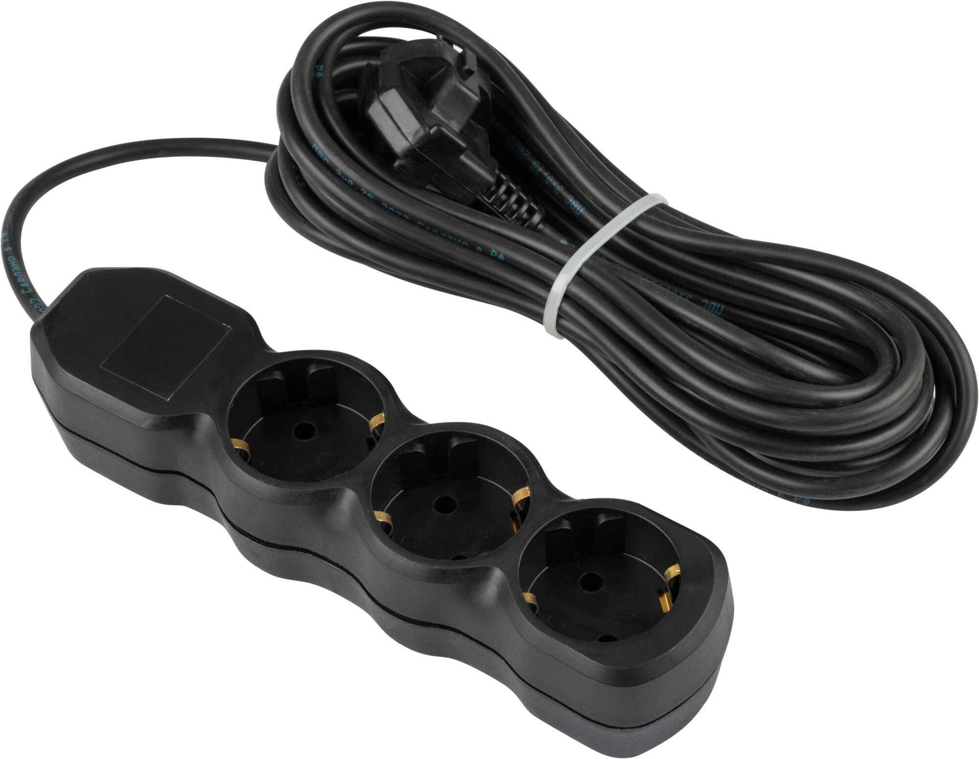 Удлинитель электрический с заземлением Engy "Гранд", 5 метров, 3 розетки, черный