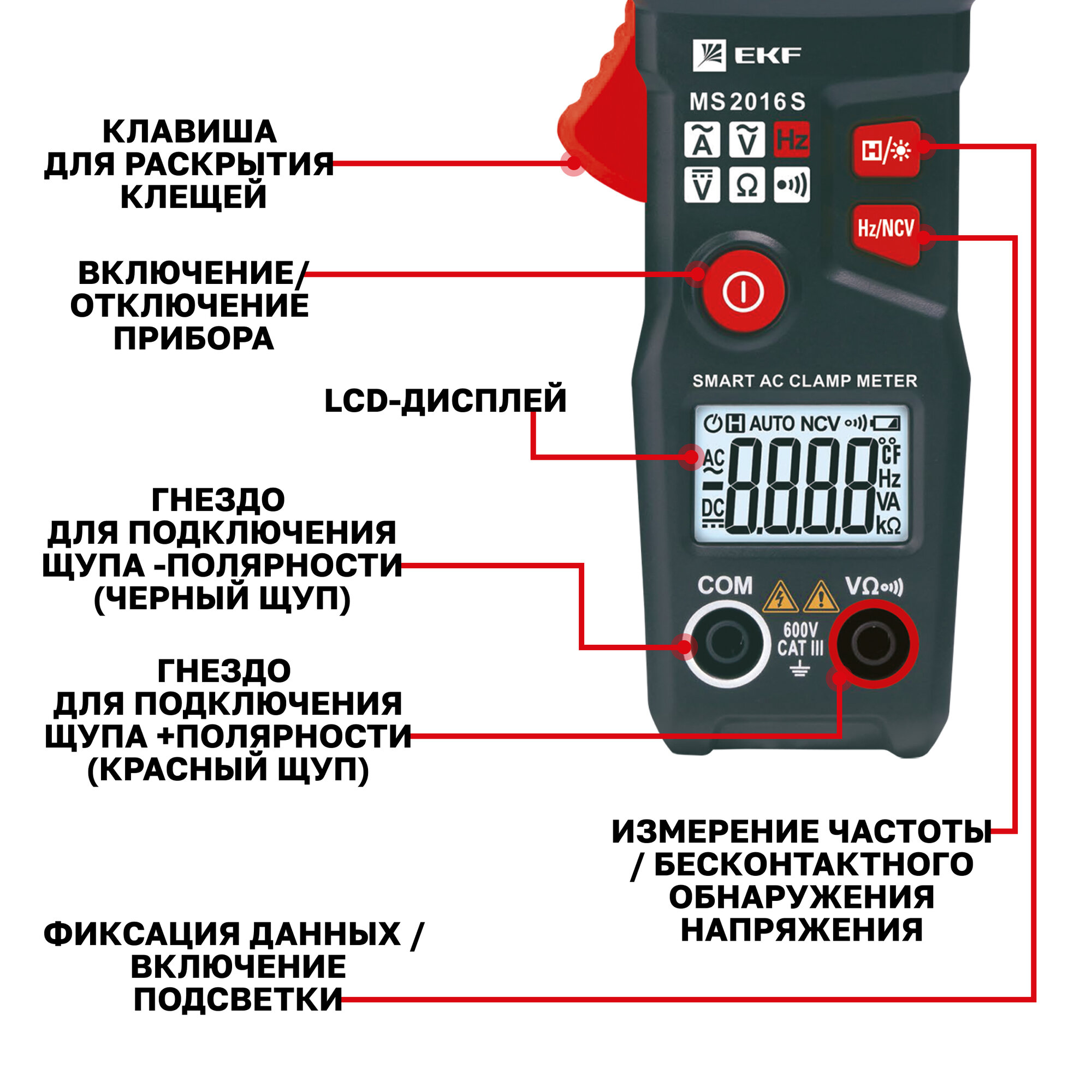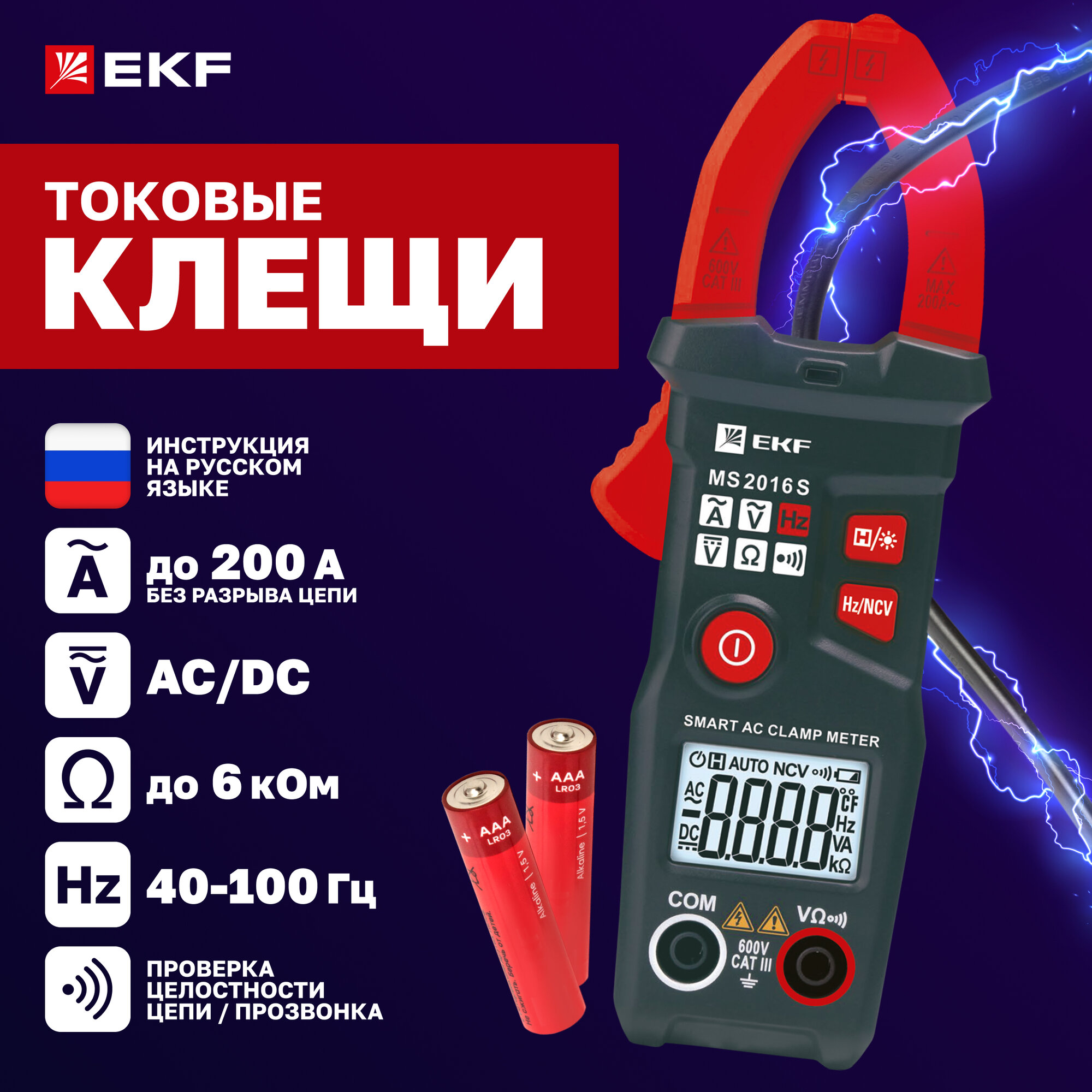 EKF Инструмент In-180702-pc2016S Токовые клещи цифровые MS2016S Expert