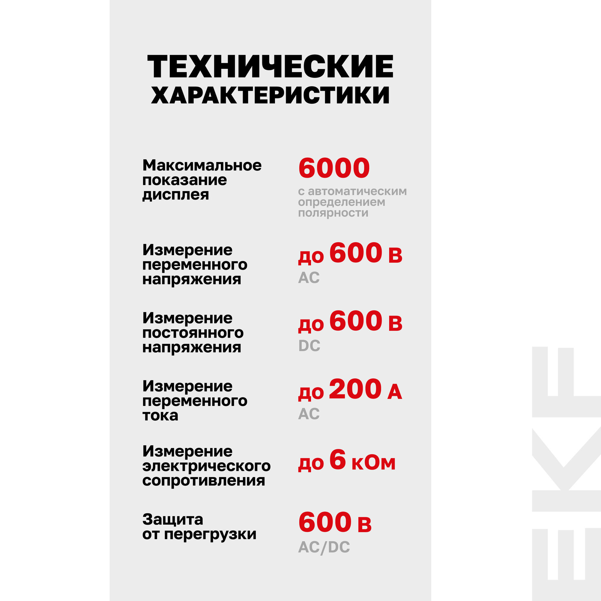 | Измерение переменного напряжения | есть |