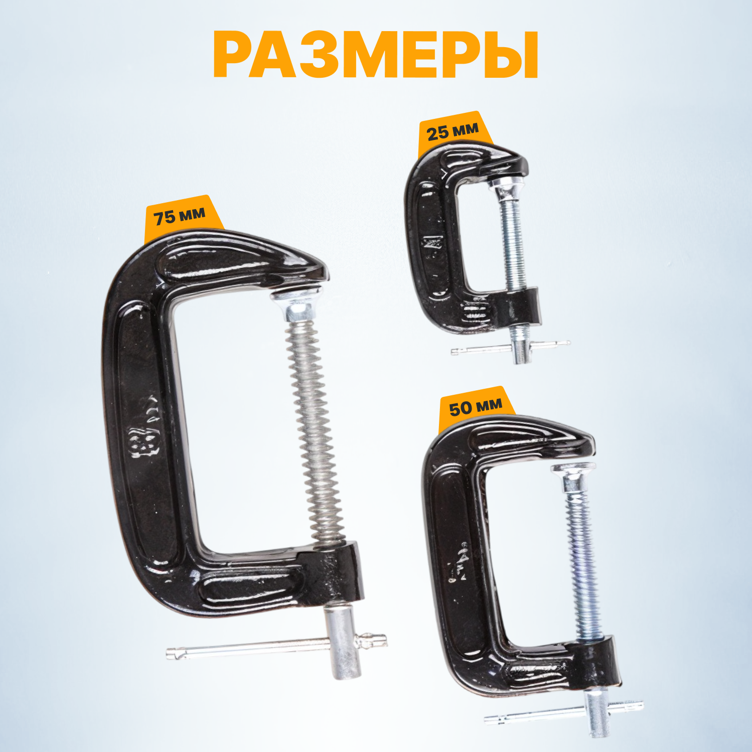 Купить Набор струбцин G-образных винтовых 25мм, 50мм, 75мм, сталь и чугун ВОЛАТ (14040-03)