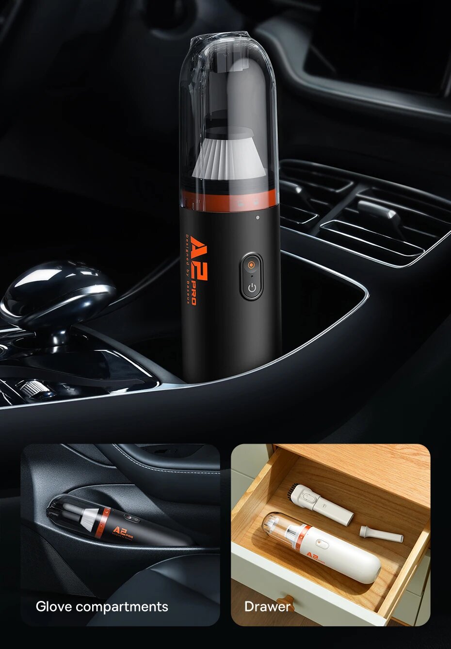 Аккумуляторный автомобильный пылесос Baseus A2 Pro, мощность всасывания 6000 Па, цвет черный/белый, Black