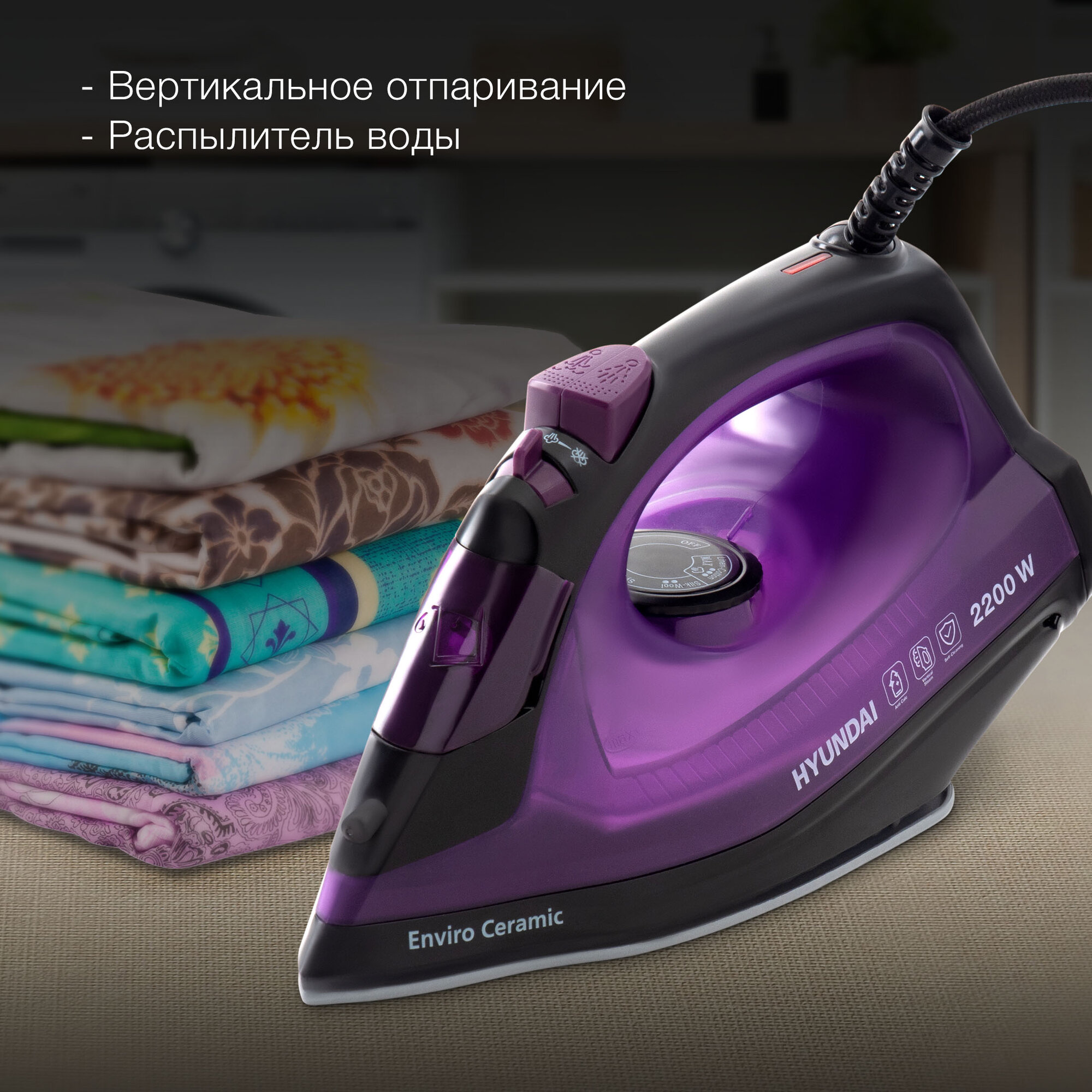 Купить Утюг Hyundai H-SI01551, черный/сиреневый