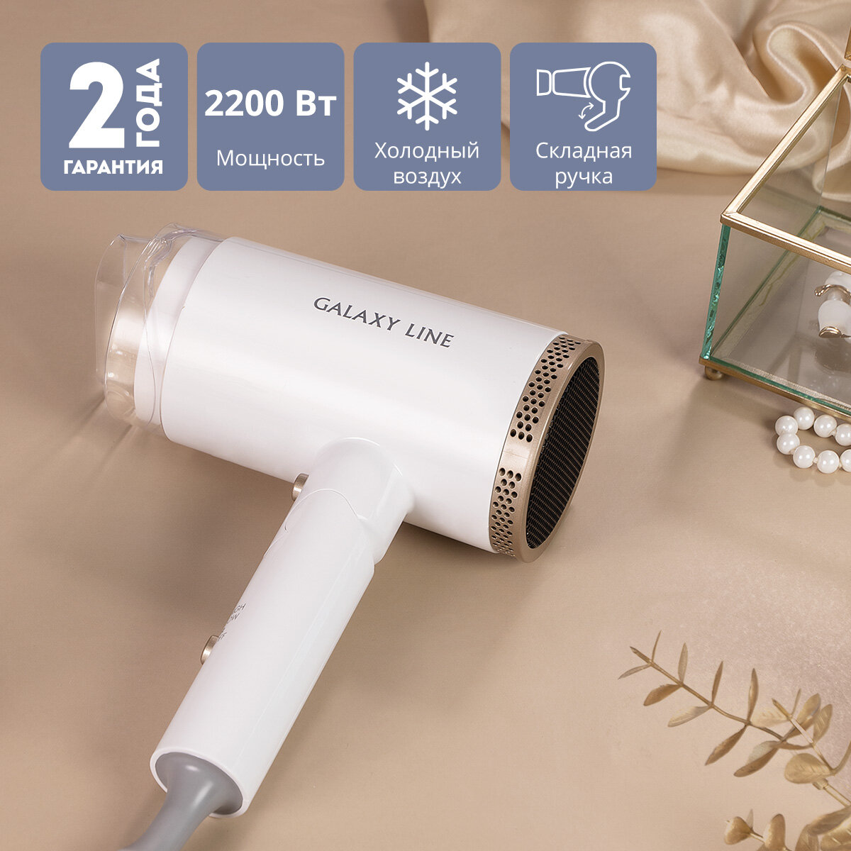 Купить Фен GALAXY LINE GL4353, 2200Вт, 2 режима, белый, складная ручка