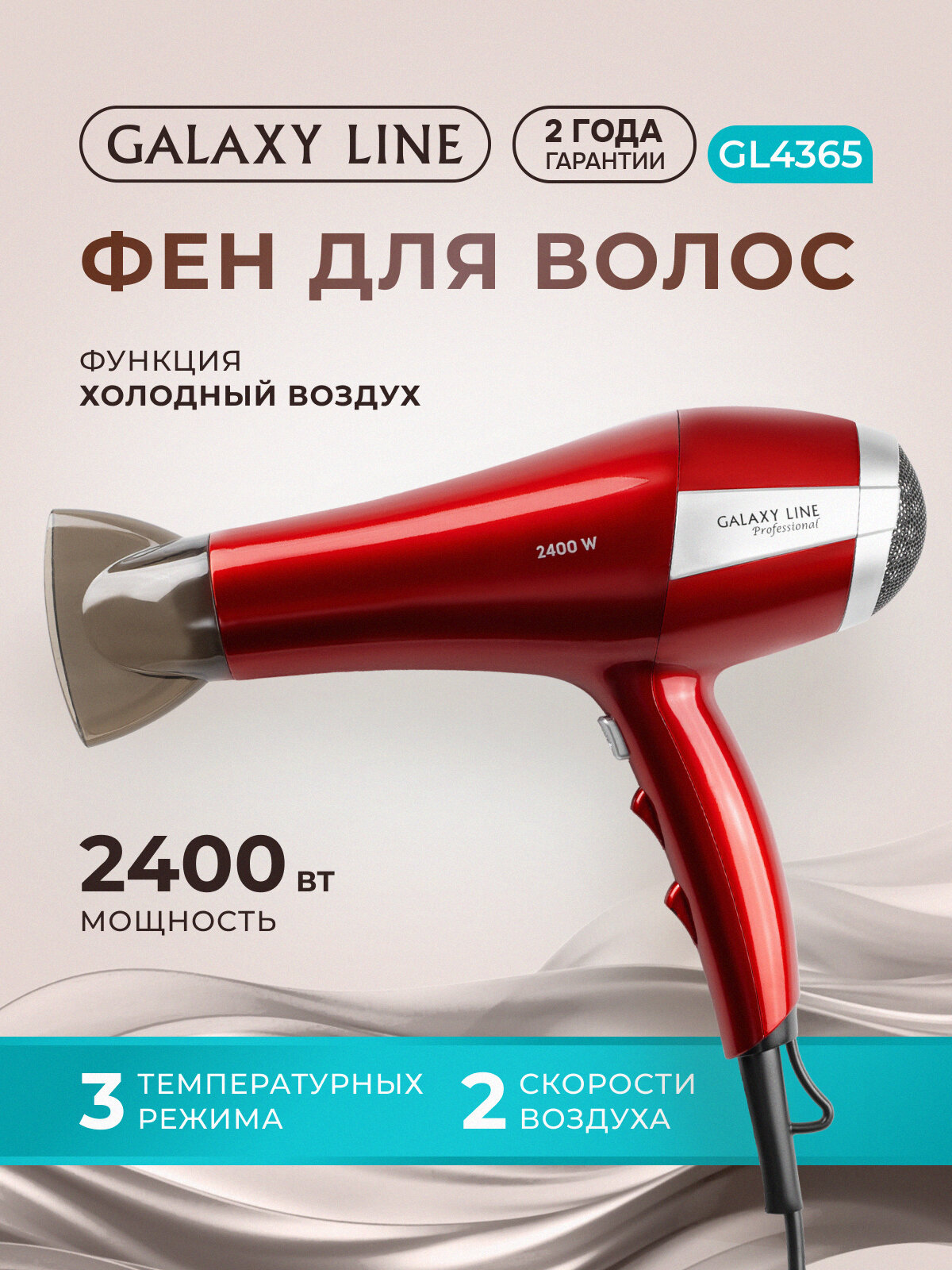 Фен GALAXY LINE GL4365, 2400Вт, красный