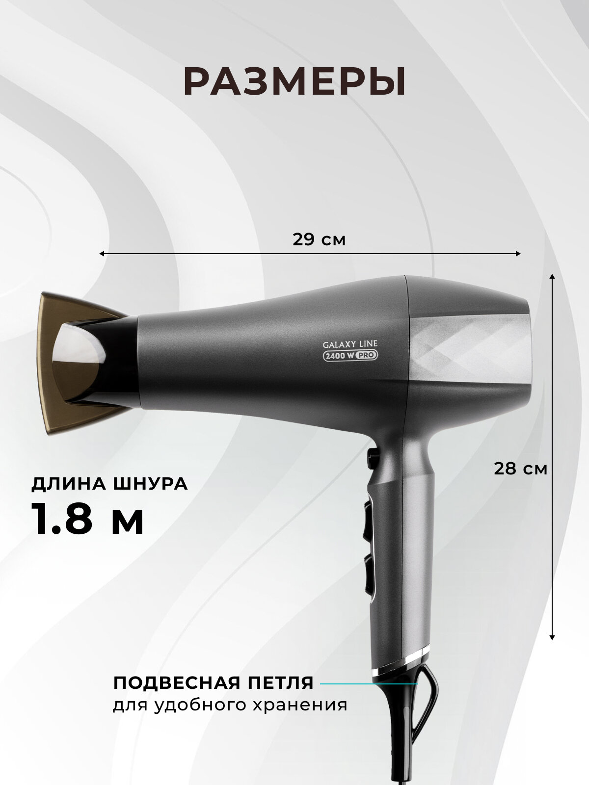 Фен GALAXY LINE GL4368, мощность 2400Вт, антрацитовый цвет