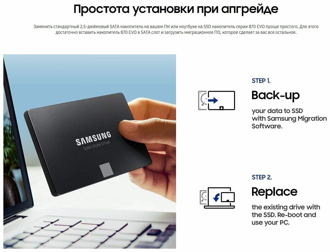 | Дополнительная информация | дополнительное ПО: ПО Magician для управления SSD, Data Migration Software для обновления SSD |
