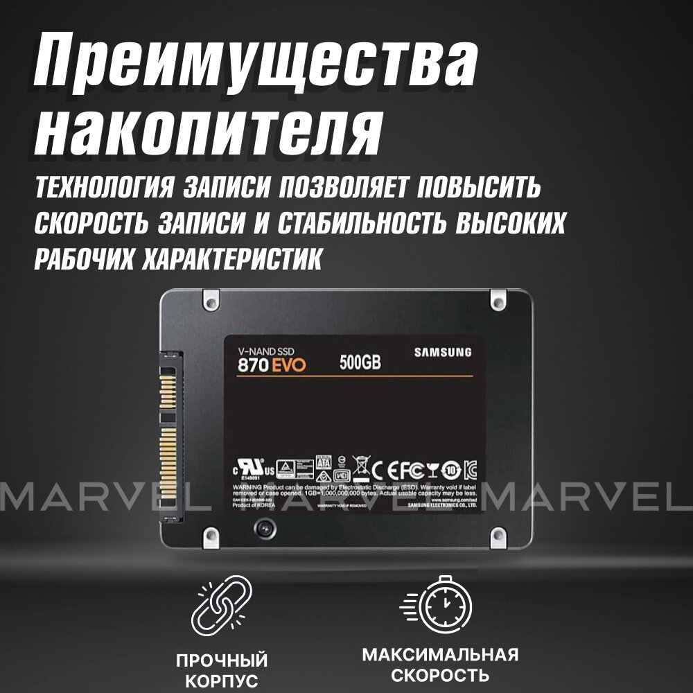 Накопитель SSD Samsung 870 EVO MZ-77E500BW/SATA III/500GB /Скорость чтения 560МБайт/с Скорость записи 530МБайт/с