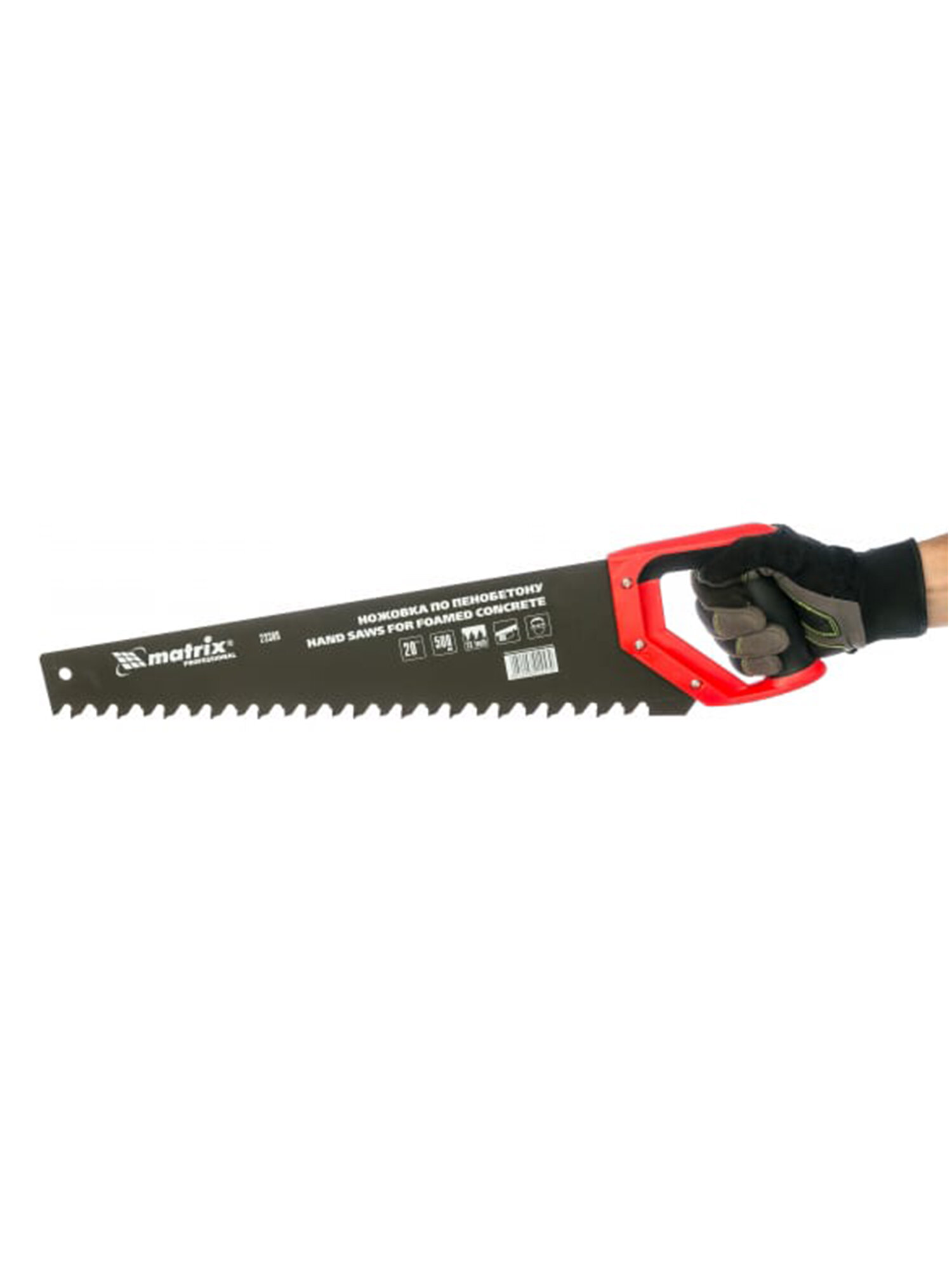 Ножовка по пенобетону, 500 мм, защитное покрытие, твердосплавные напайки на зубья, двухкомпонентная рукоятка Matrix