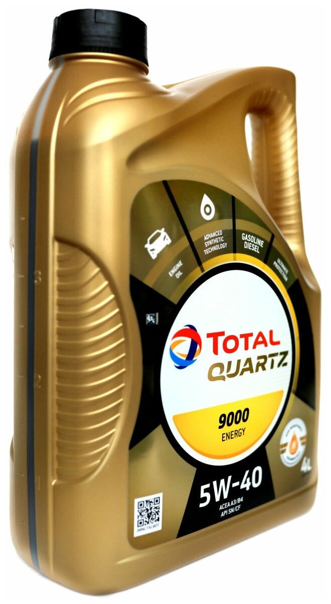 Синтетическое моторное масло TOTAL Quartz 9000 Energy 5W-40, 4 л, 3.5 кг, 1 шт