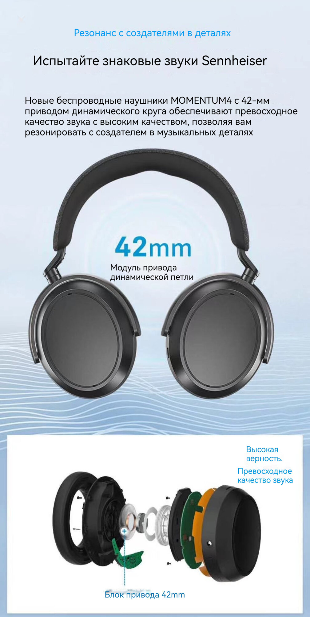 Беспроводные наушники Sennheiser Momentum 4, Blue, синий