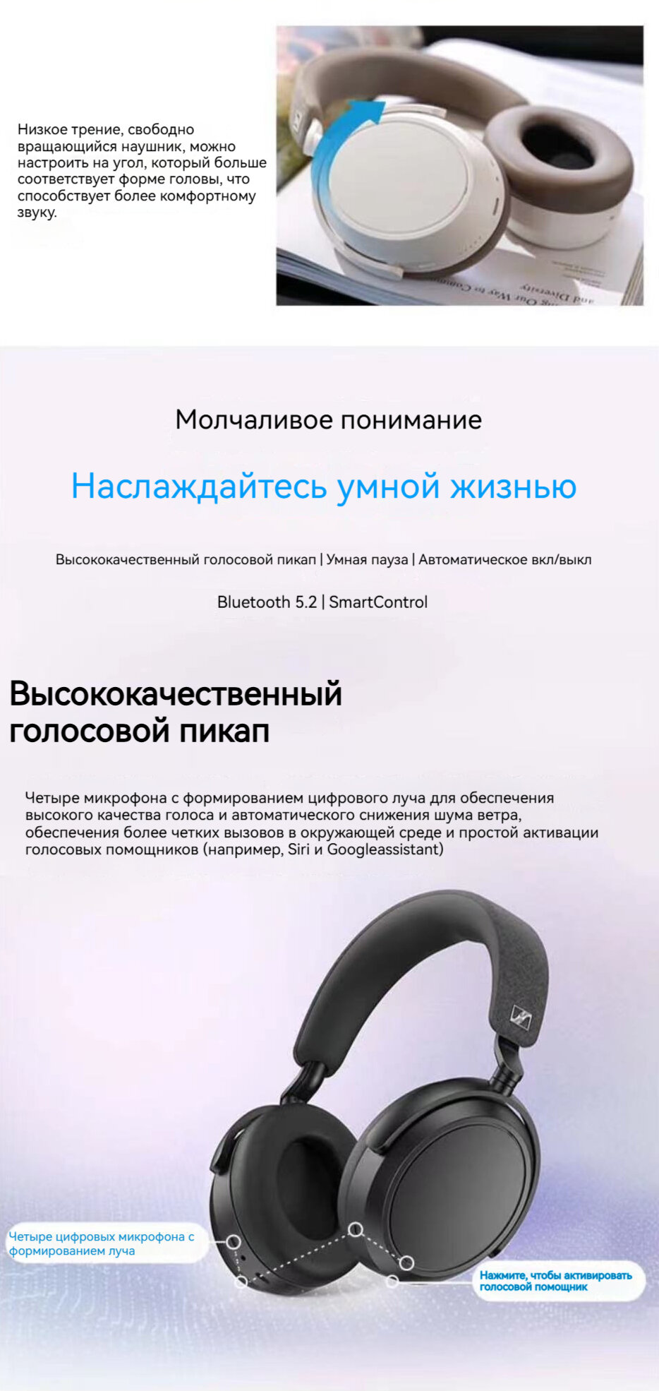 | Плюсы: | Звук хороший: басы, средние частоты неплохи (если сравнивать с hd650), высокие частоты хороши. Приложение приятное. Подчеркну фишку, что наушники можно ОДНОВРЕМЕННО подключить к двум телефонам, удобно для тех у кого отдельно рабочий телефон и собственный. Да и в целом, наушники многофункциональные