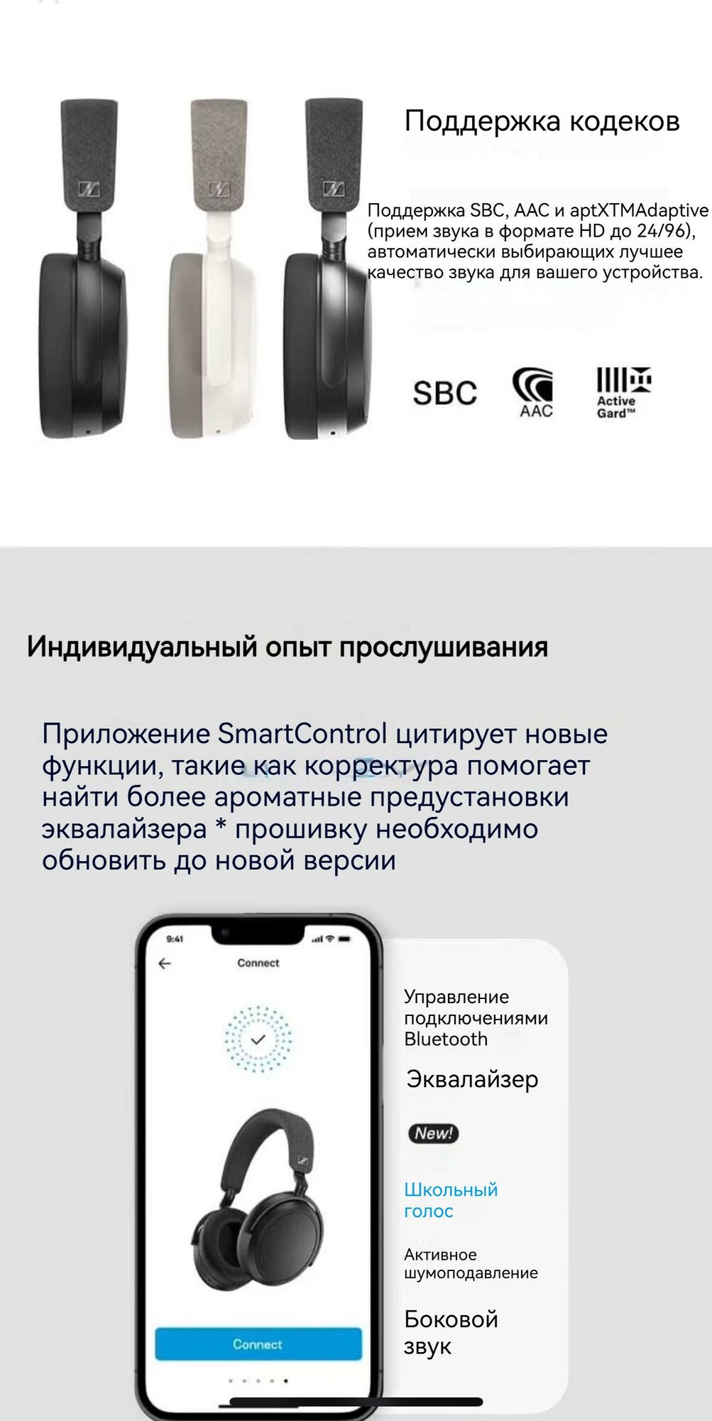 | Поддерживаемые кодеки | AAC / SBC / aptX / aptX Adaptive |