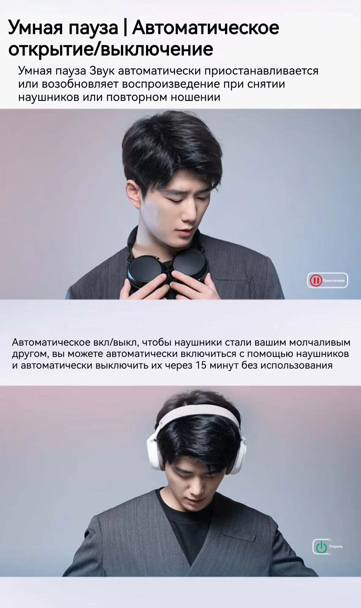 | Минусы: | Работают, либо как гарнитура (качество падает, шумодав отключается), либо как наушники (микрофон не пашет). Не всегда срабатывает отключение при снятии наушников. Не работают жесты перемотки и перехода на другую песню. |
