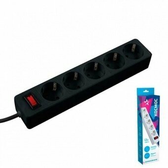 СохранитьСетевой фильтр космос, 3м, 5 гнезд с заземлением, с предохранителем, 10А/2.2 Квт, черный интересное: