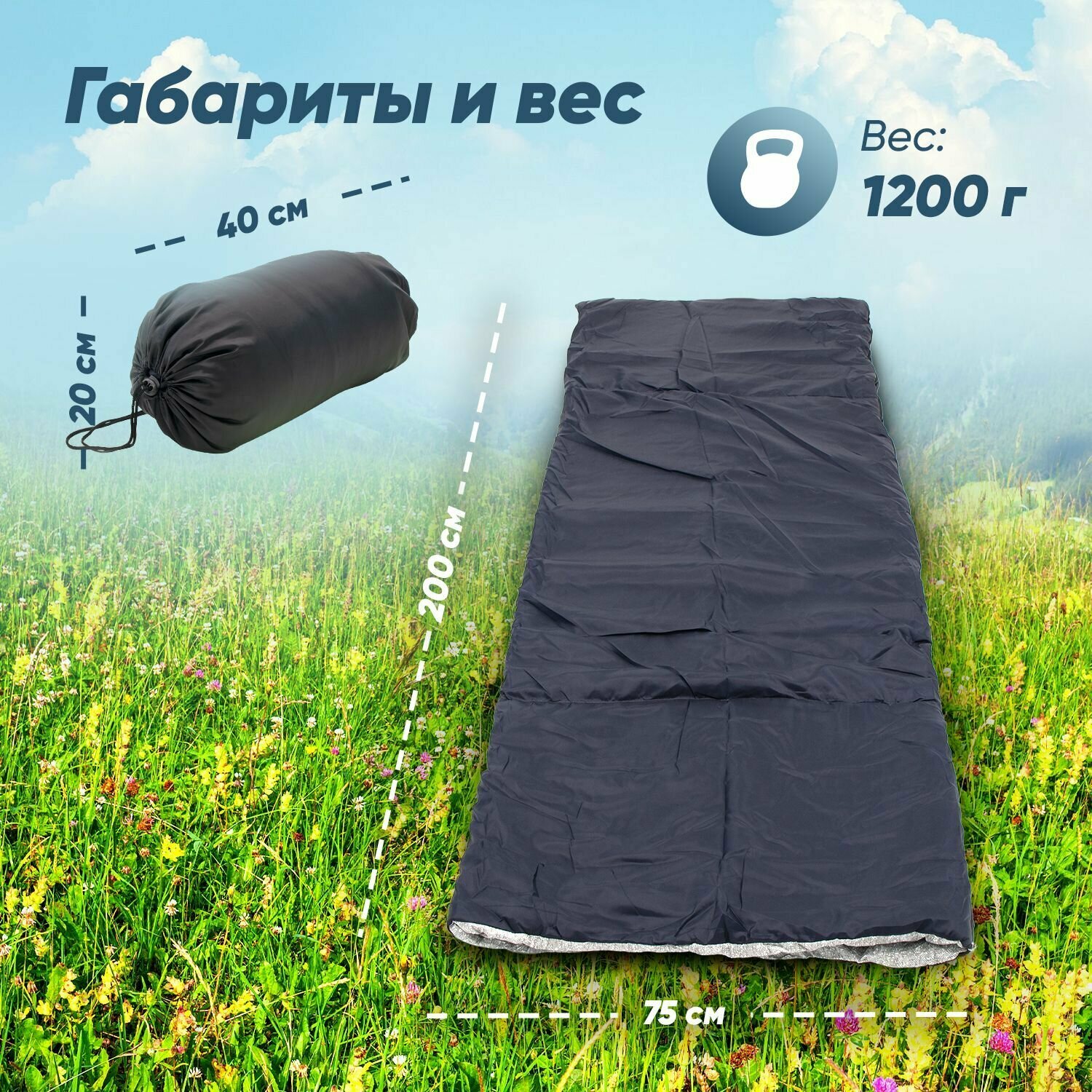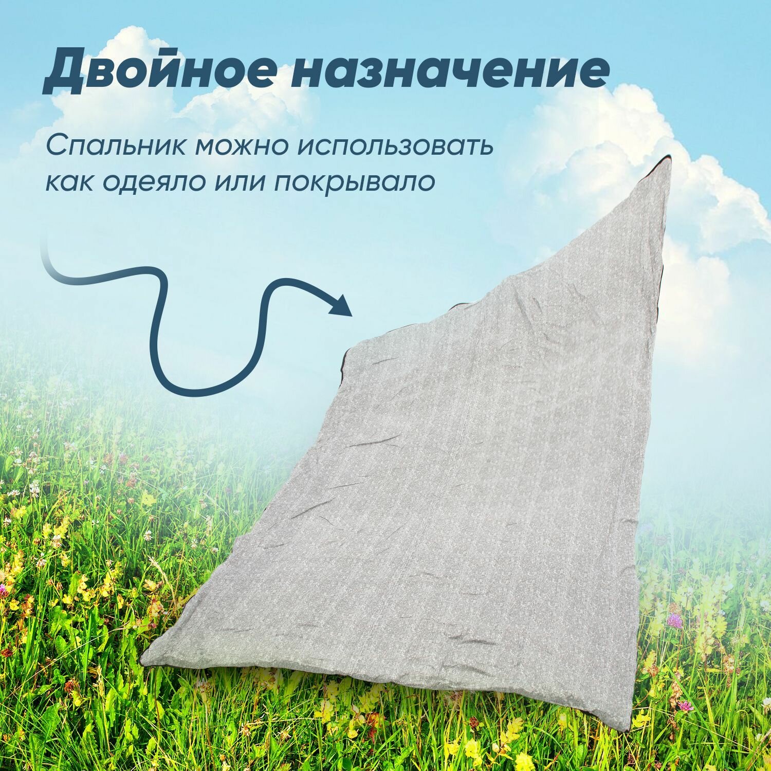 Спальный мешок туристический "следопыт - Camp", 200х75 см., до 0С, 3х слойный, цв.темно-серый / Спальник туристический / Одеяло туристическое / Мешок-одеяло