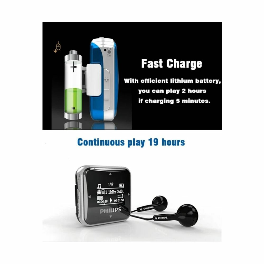 Philips 100% оригинальный SA2208 мини mp3-плеер Fullsound с функцией записи/FM-радио бег назад зажим музыкальный спортивный MP3-плеер