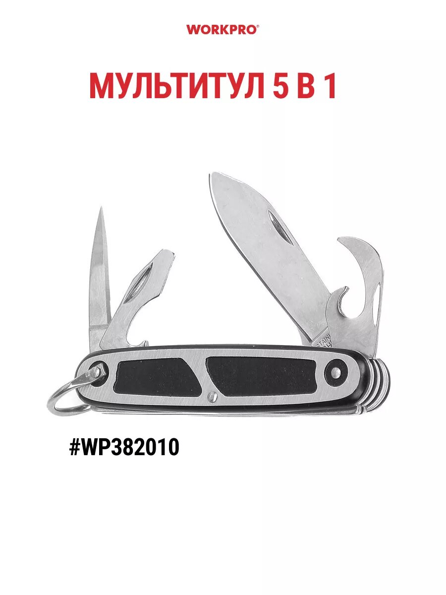 СохранитьМультитул туристический 5 в 1, WP382010, WORKPRO, цвет серебристый/черный интересное:
