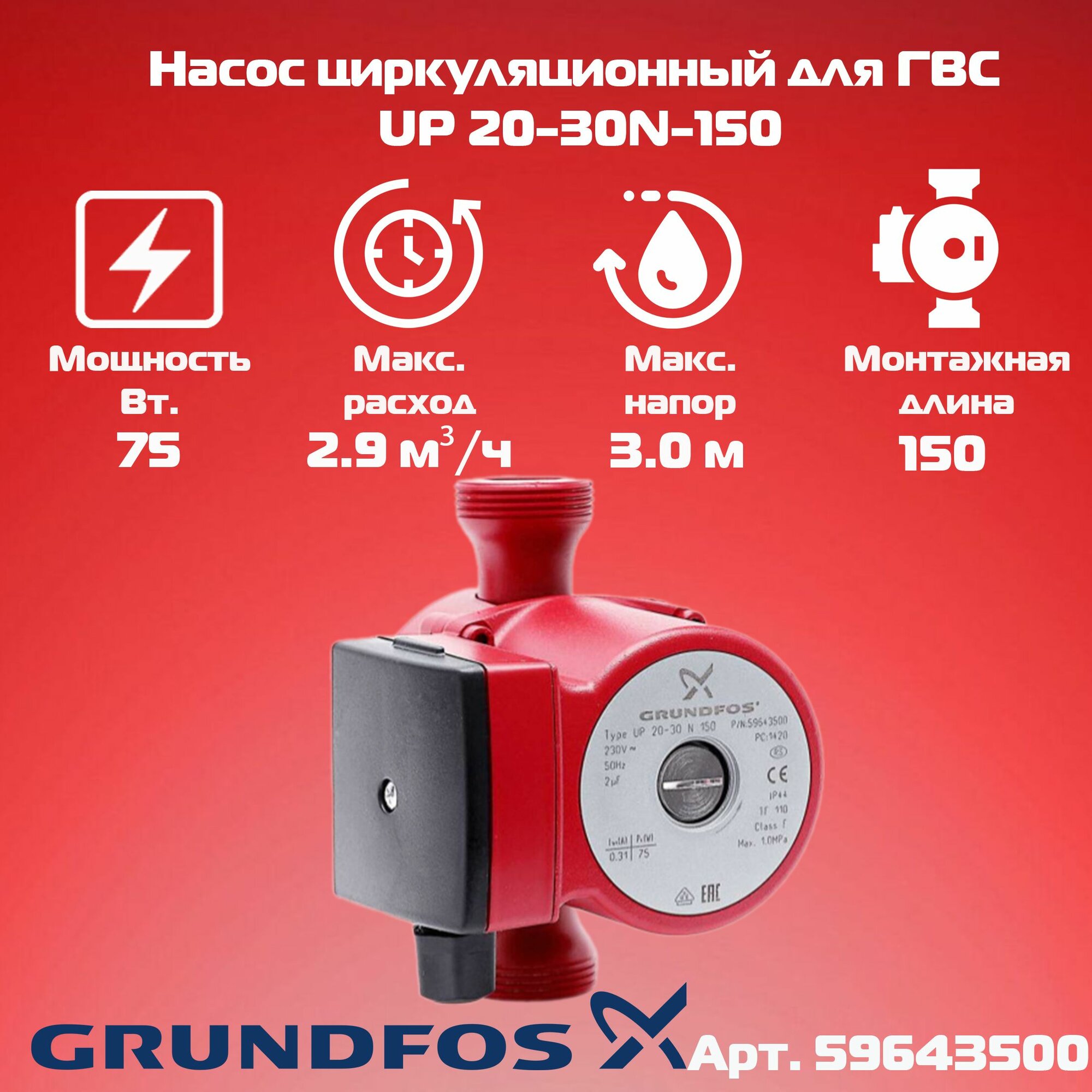 СохранитьЦиркуляционный насос для ГВС Grundfos UP 20-30 N (75 Вт), нерж. интересное: