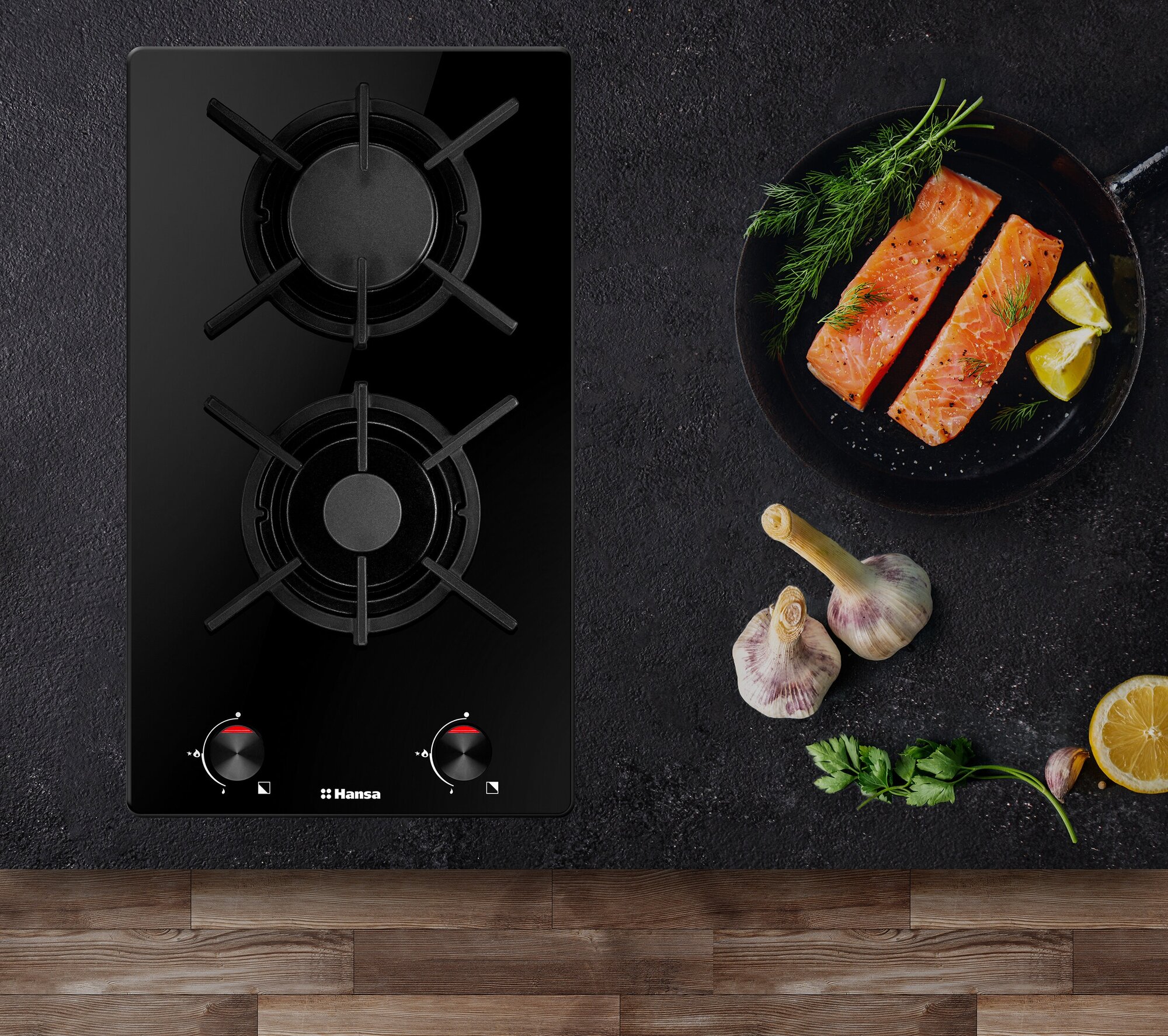 Поверхность "домино" газовая HANSA BHKS330300 черный (стекло)