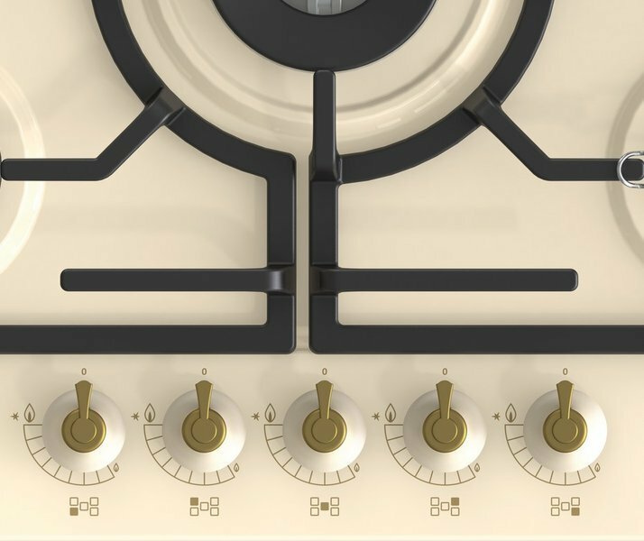 Варочная поверхность Gorenje GW 7C51CLI газовая, слоновая кость, 5 конфорок, конфорка WOK, газ-контроль, электроподжиг,