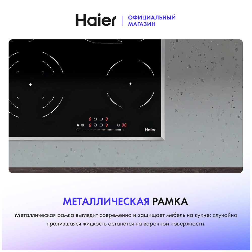 Электрическая варочная панель Haier HHY-C64TOFB, цвет панели черный, цвет рамки серебристый