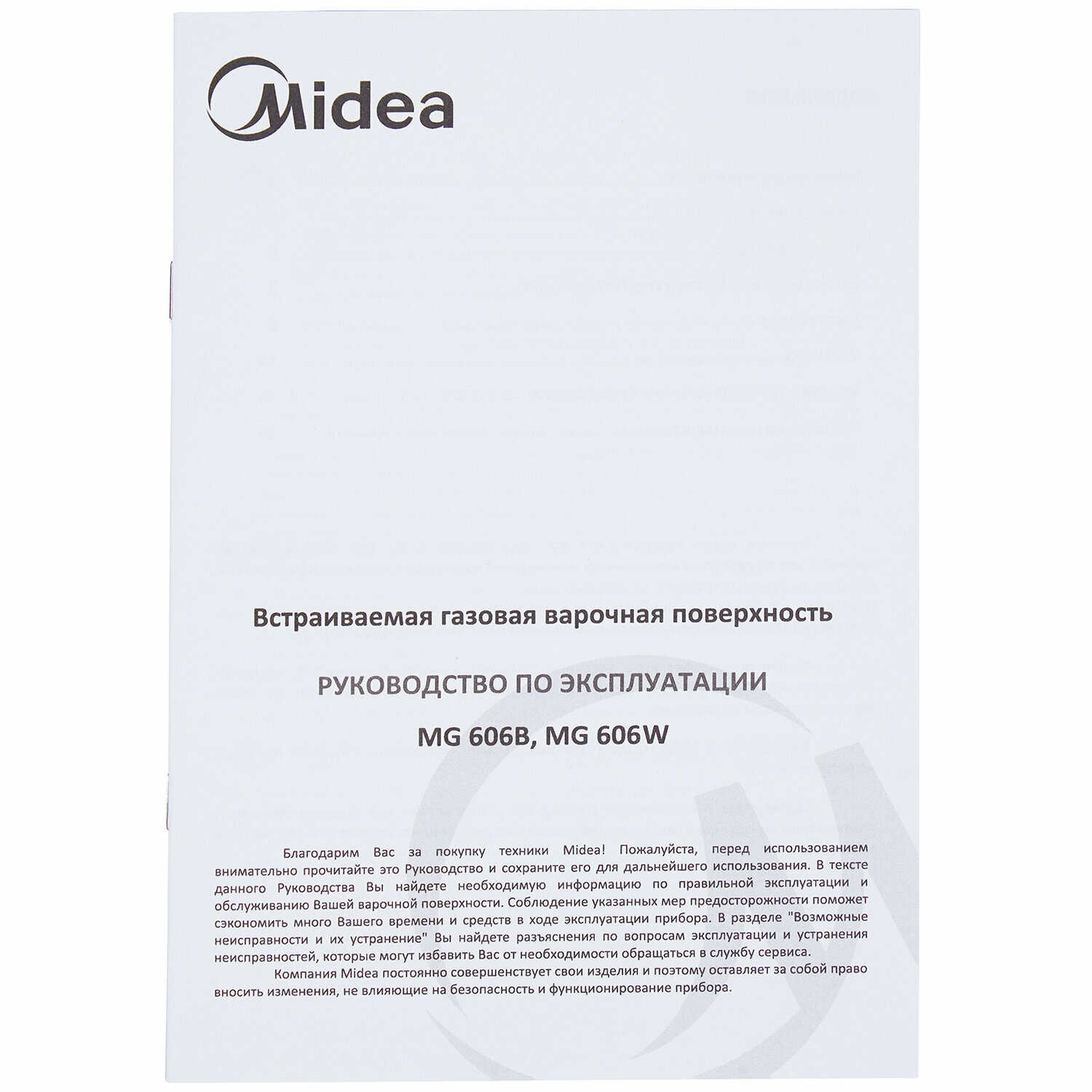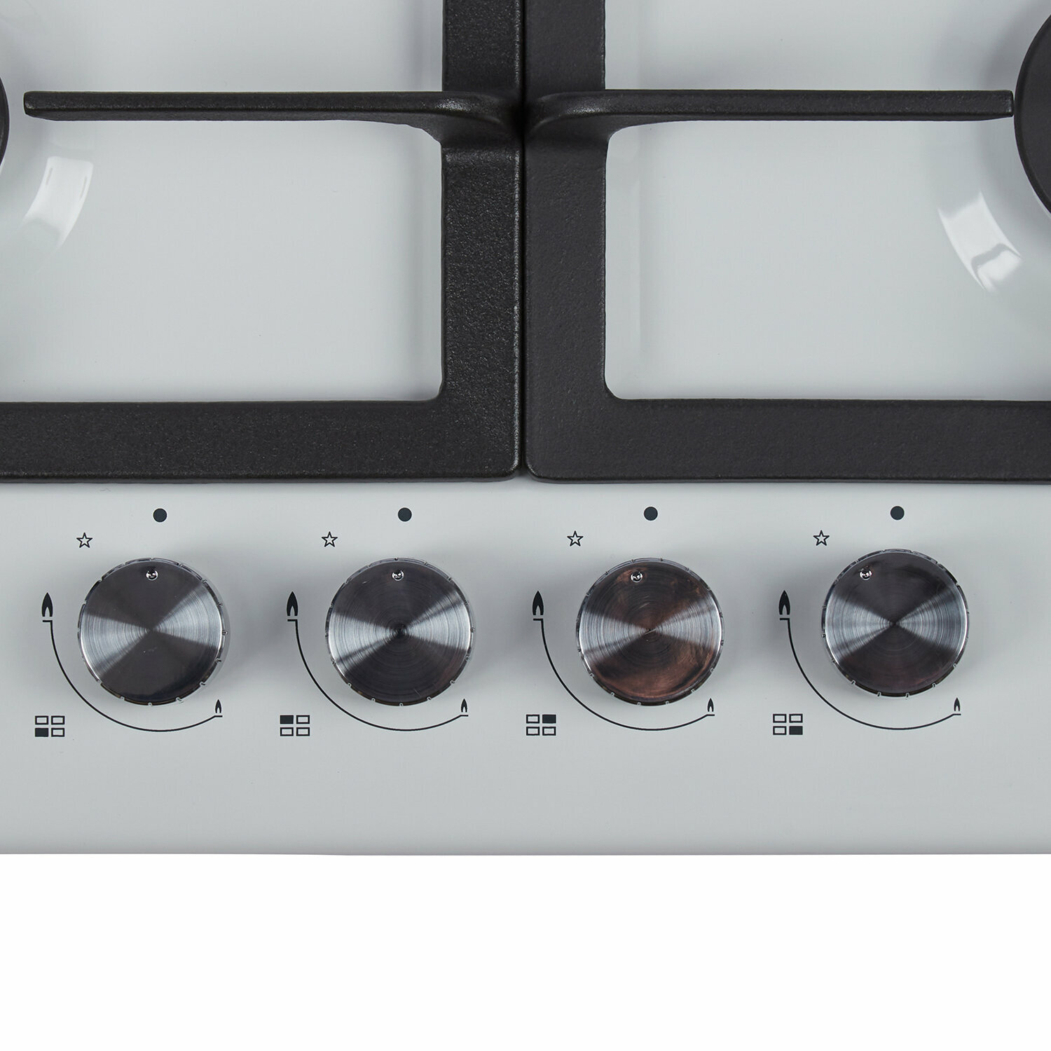 Купить Поверхность газовая независимая Midea MG606W, 4 конфорки, решетки чугунные, цвет белый металл, газ-контроль
