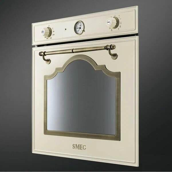Smeg Встраиваемая электрическая духовка SMEG/ Cortina,встраиваемый электрический духовой шкаф, пиролиз, кремовый/ фурнитура латунная