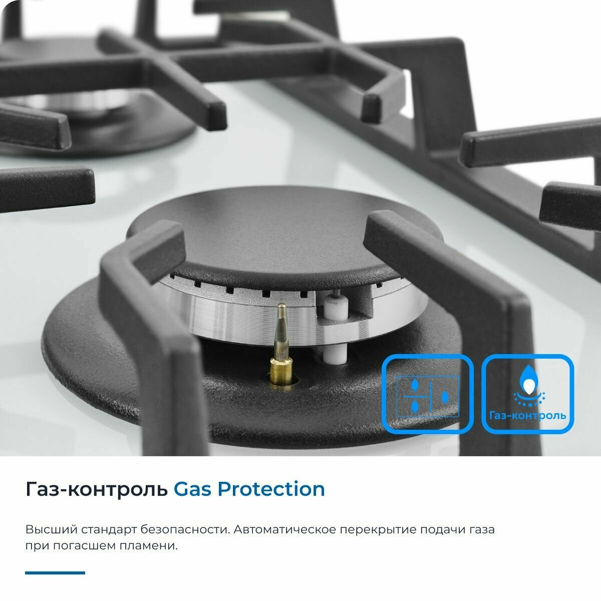 Газовая варочная панель ZUGEL ZGH451W, газ-контроль, WOK-конфорка, 45 см, автоматический электроподжиг, трехконтурная конфорка, белый