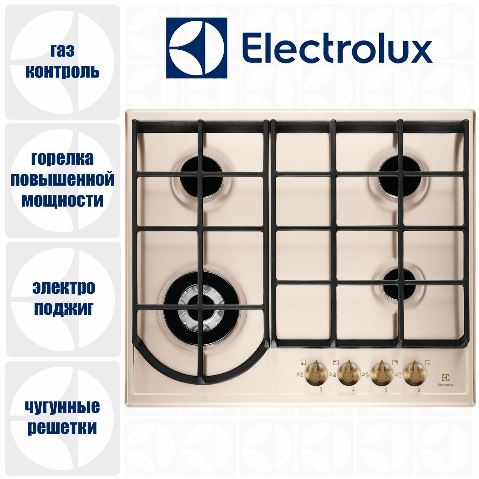 Газовая варочная панель ELECTROLUX EGH6343RON, электроподжиг, цвет бежевый интересное: