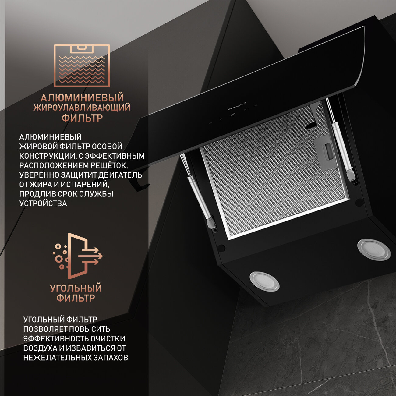 Купольная вытяжка Weissgauff Merga 60 BL Sensor 3 года гарантии, Алюминиевый жировой фильтр, Низкий уровень шума