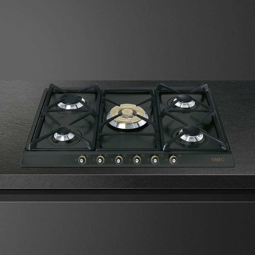 Встраиваемые газовые панели SMEG/ Газ, CORTINA,газовая варочная панель, 70 см,антрацит/фурнитура латунь