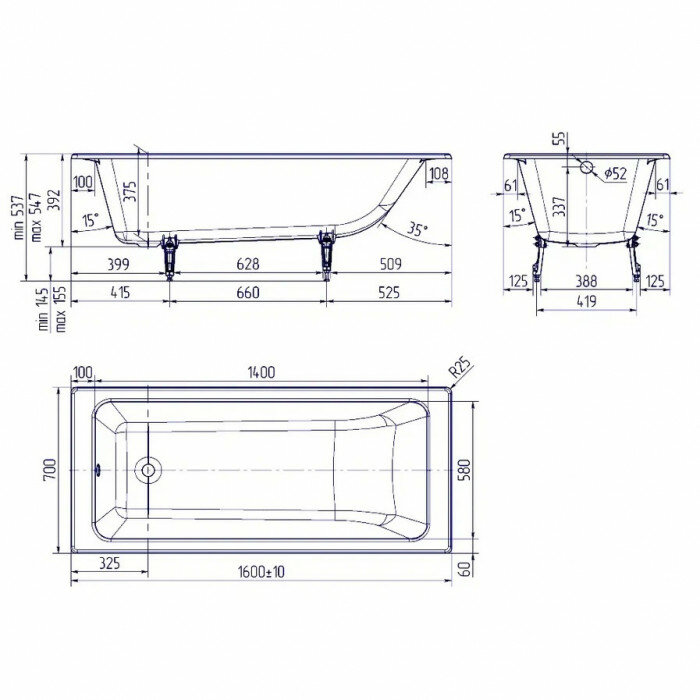 Ванна чугунная Delice Parallel 1600х700, без ручек