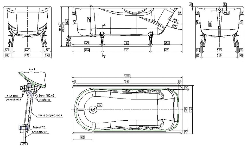 | Подробная комплектация | Ванна, комплект ножек, комплект ручек |